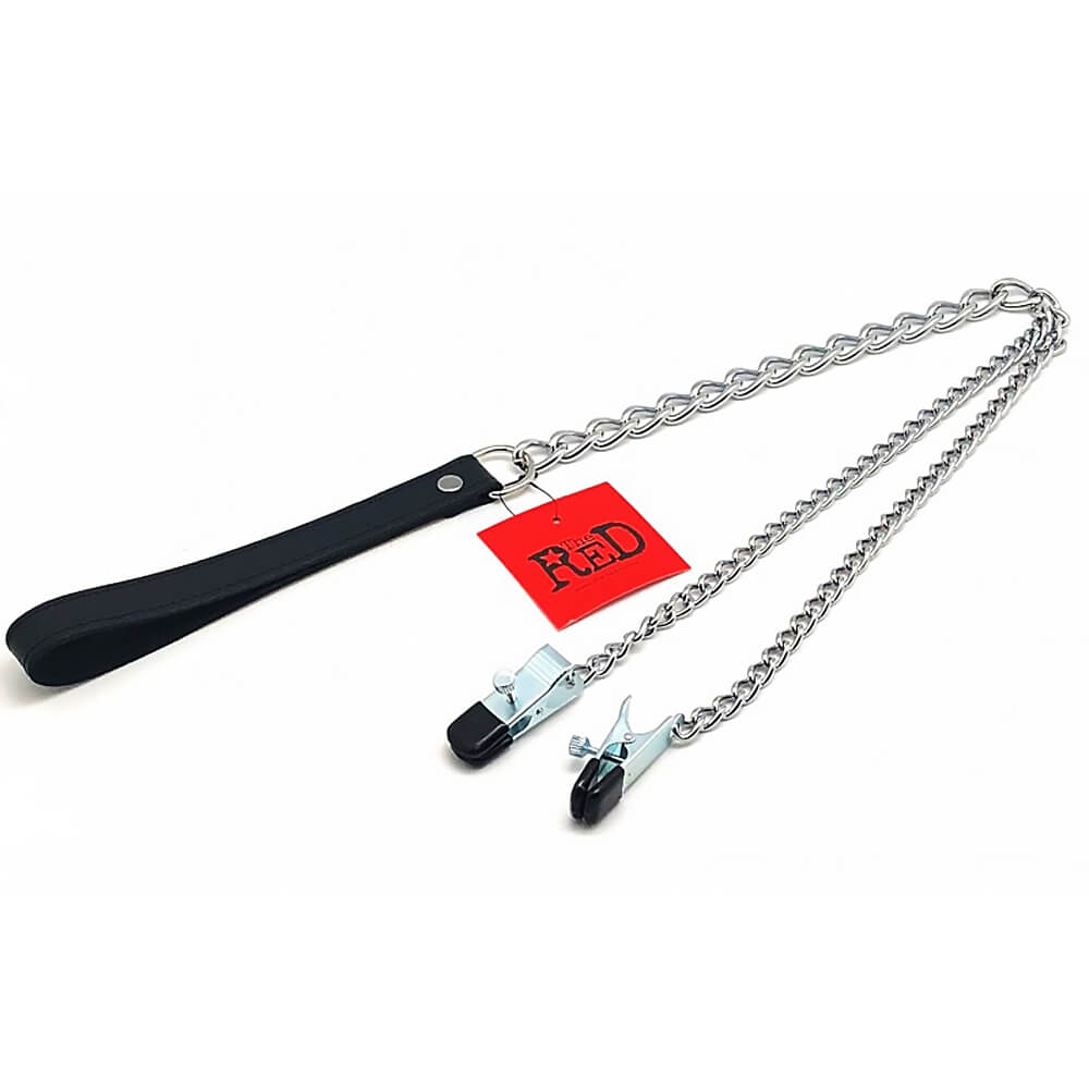 FILA001 - Paire de pinces à tétons acier The Red 5.5cm avec chaine et laisse