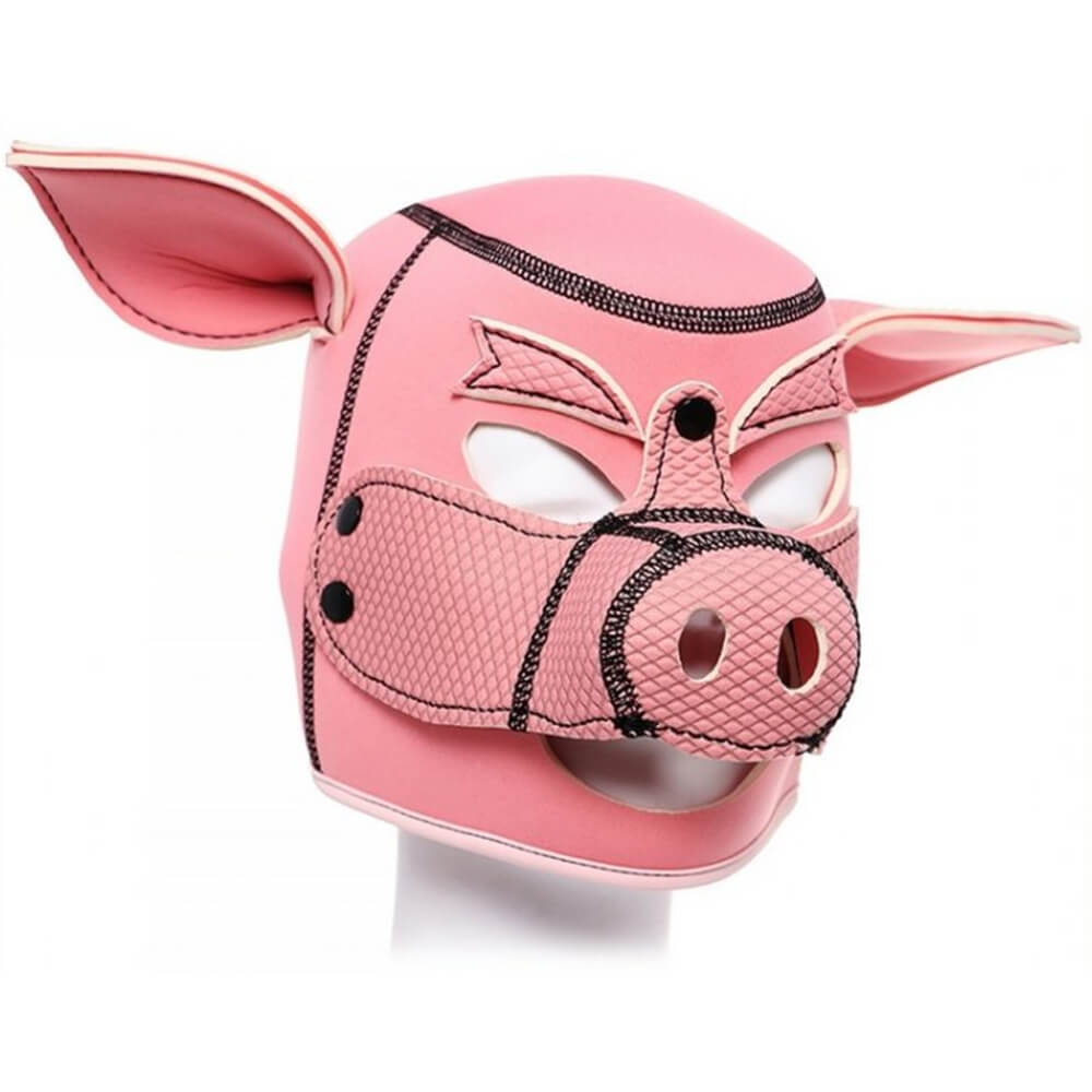 Masque tête de cochon en néoprène, Pig Hood, rose.