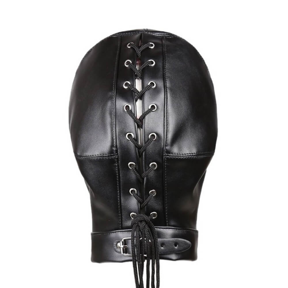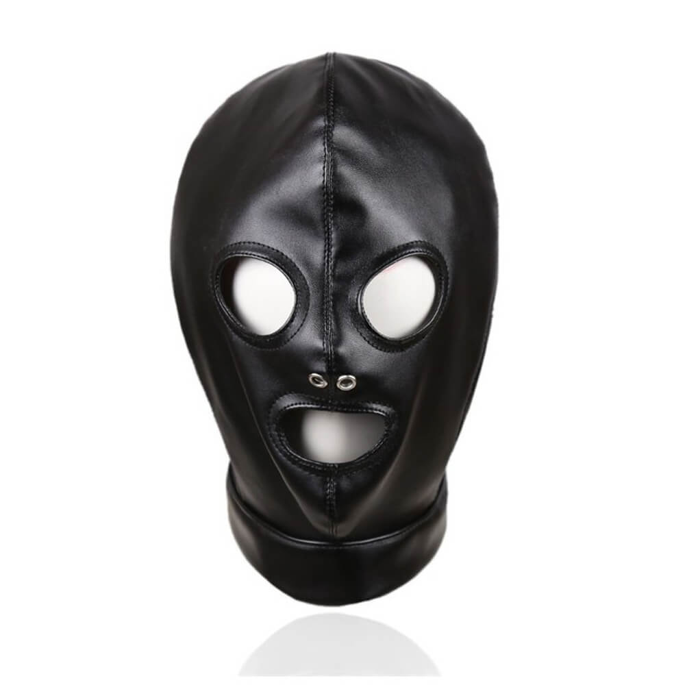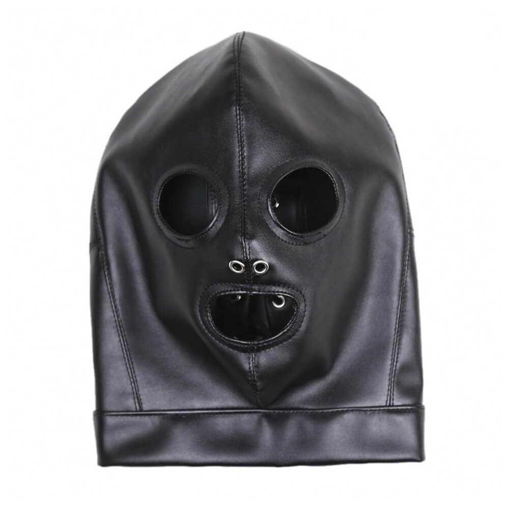 La cagoule est réalisée en matière simili cuir.